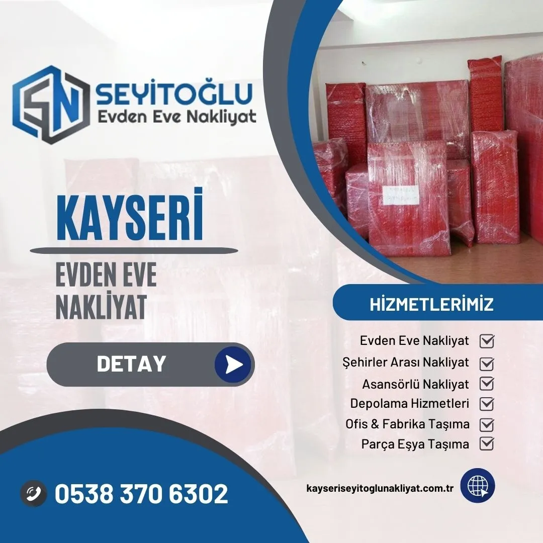 Kayseri'de evden eve nakliyat denildiğinde akla gelen ilk isimlerden olan Seyitoğlu Nakliyat; taşıma esnasında her türlü paketleme, mobilya demonte ve montesini yapmaktadır.